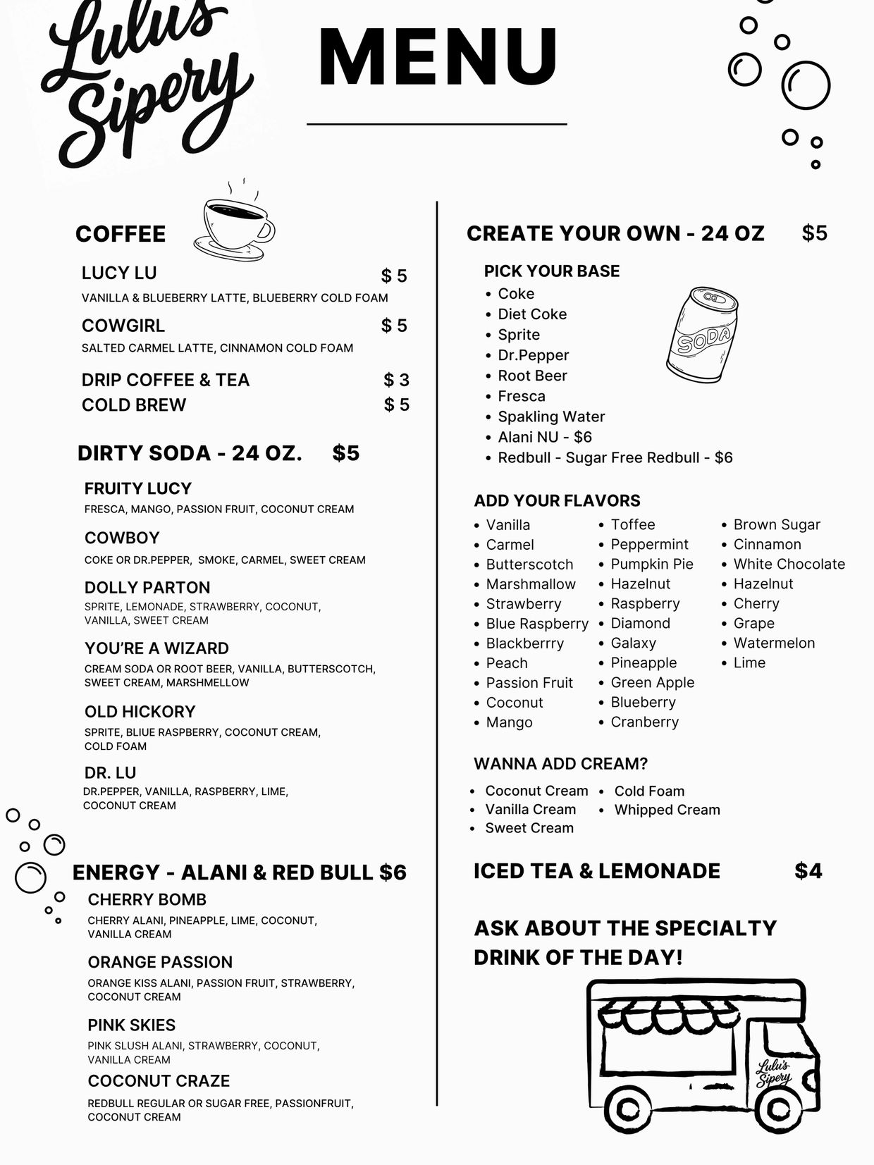 Welcome to Lulu's Sipery, your go-to source for delicious and high-quality drinks and beverages. We offer a vast selection of beverages, including coffee, tea, soda, energy drinks, smoothies, and more. Our beans are always fresh and sourced from our local partners at Obsessive Coffee Disorder, ensuring that you get the best taste and quality for your money. Our team is dedicated to providing exceptional customer service, fast shipping, and hassle-free returns. Come and explore our selection today, and find the perfect drink for you!